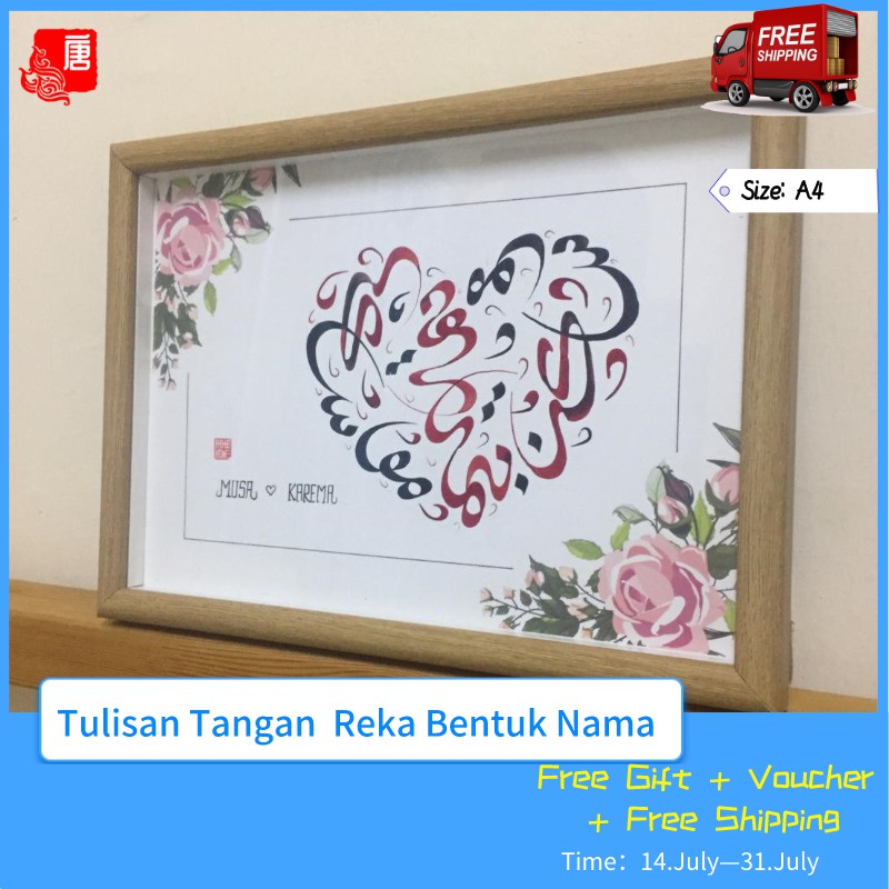 A4 Reka Form Name Order Islamic Calligraphy Frame Khat Kufi Calligraphy Wedding Gift Islamic Art Wall Deco Shopee Singapore